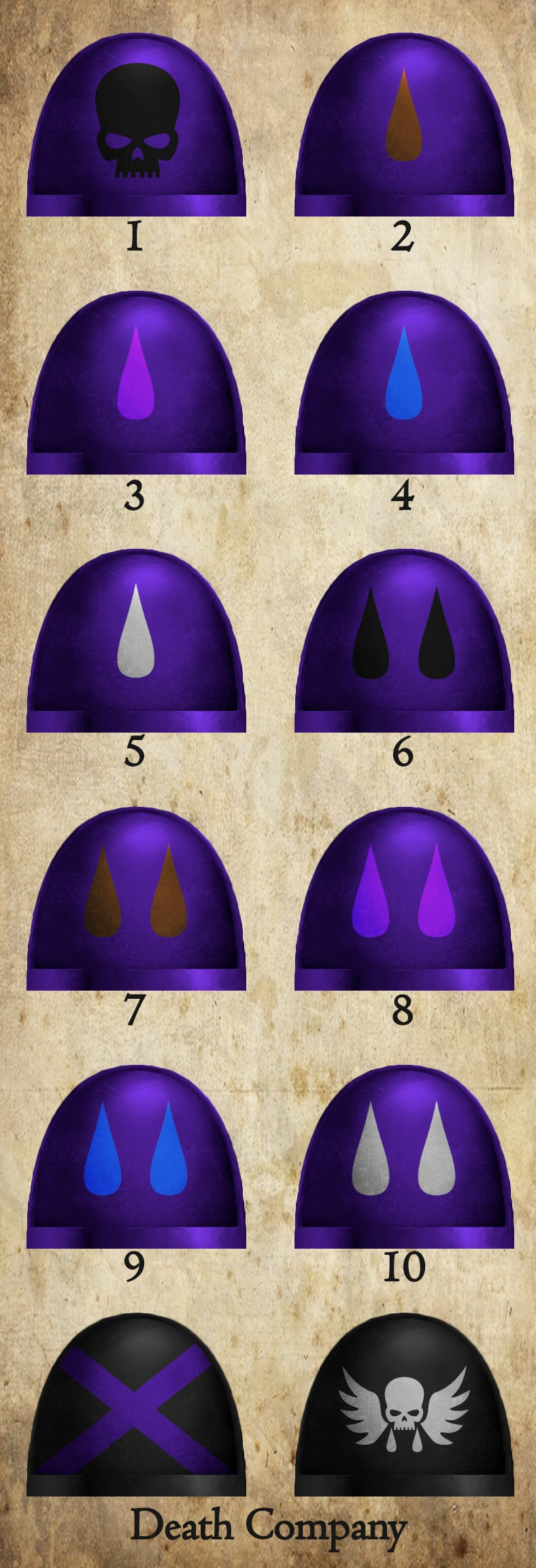 - 8th Company (Reserve Assault): Twin purple blood drops, side by side.