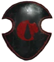 Most unusual for a Blood Angels' Successor Chapter, instead of using the same heraldic symbols to represent squad specialty and number as their progenitors, they instead use the Codex-prescribed specialty symbols (Fire Support, Close Support, Battleline, Veteran or Command), which indicates a battle-brother's assigned battlefield role. These symbols are white in colour and displayed upon their right shoulder pauldron inset. A small red blood drop is place in the center of the squad specialtist symbol. These symbols represent an individual battle-brother's assigned squad specialty, whether they be battleline, fire support, close support, veteran or command - a holdover of their ancient IX Legion heritage. These are indicated by black coloured symbols stenciled upon the right shoulder pauldron.