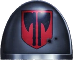 The Threshold are a team of 20 warriors, members of the elite who are unsuited to become a Reforged but are as skilled in combat as them. Handpicked by the Pallitax the members of the Threshold are always deployed alongside him unless sent as diplomats in his place to meet other chapters or members of the different branches of the imperium. All prior markings or honour marks are removed, instead they done suits of artificer armour that have the right arm stripped to bare grey ceramite with a door and sickle embossed in brass on their right shoulder pad and are given one of 20 unique coat of arms shields to don.