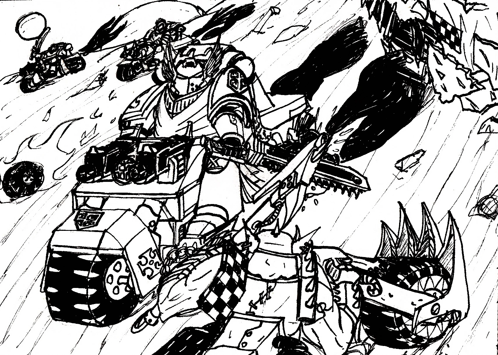 Similar to the Scout Bikers, which are rarely seen or used, the Hussar Bikers are a lighter variation of the Bikers (which are a preferred unit of the Crimson Dragoons). They are made for speedy reconnaissance, making their way through dangerous territory to obtain vital information which would be necessary for their brethren, They also lay down Land Mines along the way, to disrupt enemy movements. The Hussar Bikers have even been known to lure their enemies into Mine Fields, which made many would-be pursuers cautious of unfamiliar lands.