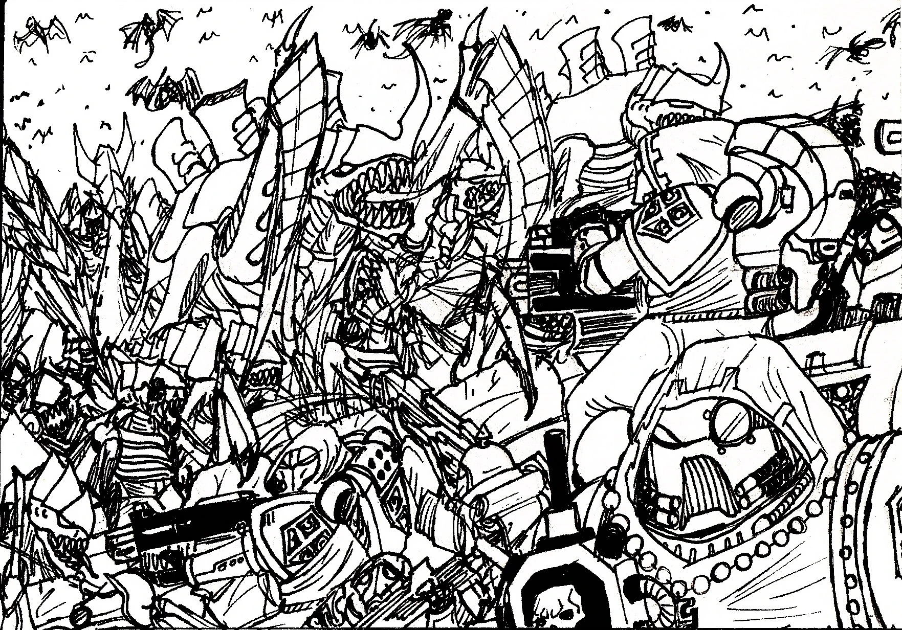 The Crimson Dragoons have met the Tyranids only at the eve of the 41st Millennium and yet they had fought them many times. They have met splinter fleets of Hive Fleet Leviathan as well as remnants of Hive Fleet Ophidia and other Minor Hive Fleets that had entered the Ultima Segmentum. There were times when the Crimson Dragoons would emerge triumphant, being able to eradicate every alien organism they could find, and there were times when they could not hold back the tides of flesh and fangs and would ultimately sacrifice themselves in glorious last stands. As of now, a large part of the Crusading Company is reported to be fighting Hive Fleet Cerberus in Segmentum Pacificus.
