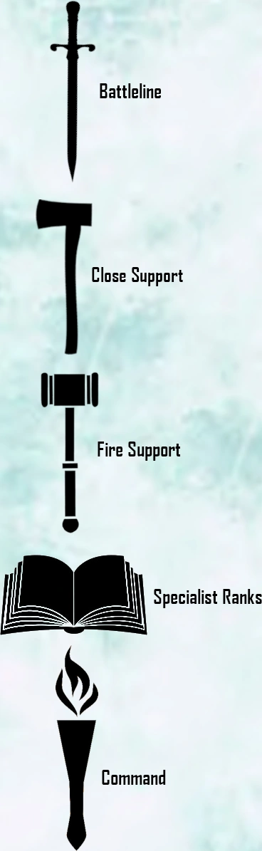 The Dawn Guardians prefer close combat, utilizing drop assaults and mobile deployment in order to get as close to the enemy as possible and retain maneuverability in an ever shifting battlefield. In battle, it is common for a Company to split into two Demi-Companies, the Sword and Shield, each led by a Sword Master and Shield Master respectively. The Sword Company acts as an offensive force while the Shield Company acts as a defensive force or additional fire support for the Sword Company.