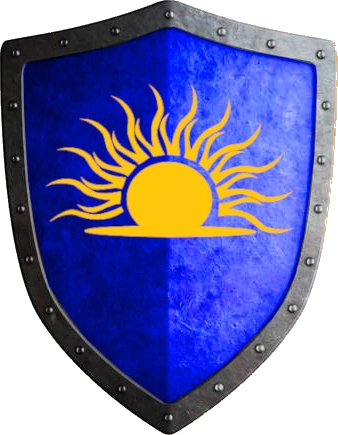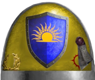 The Dawn Guardians' badge is a blue shield with a rising sun in its center. The shield symbolizes the Chapter and the sun is the Imperium of Man who they are sworn to defend.