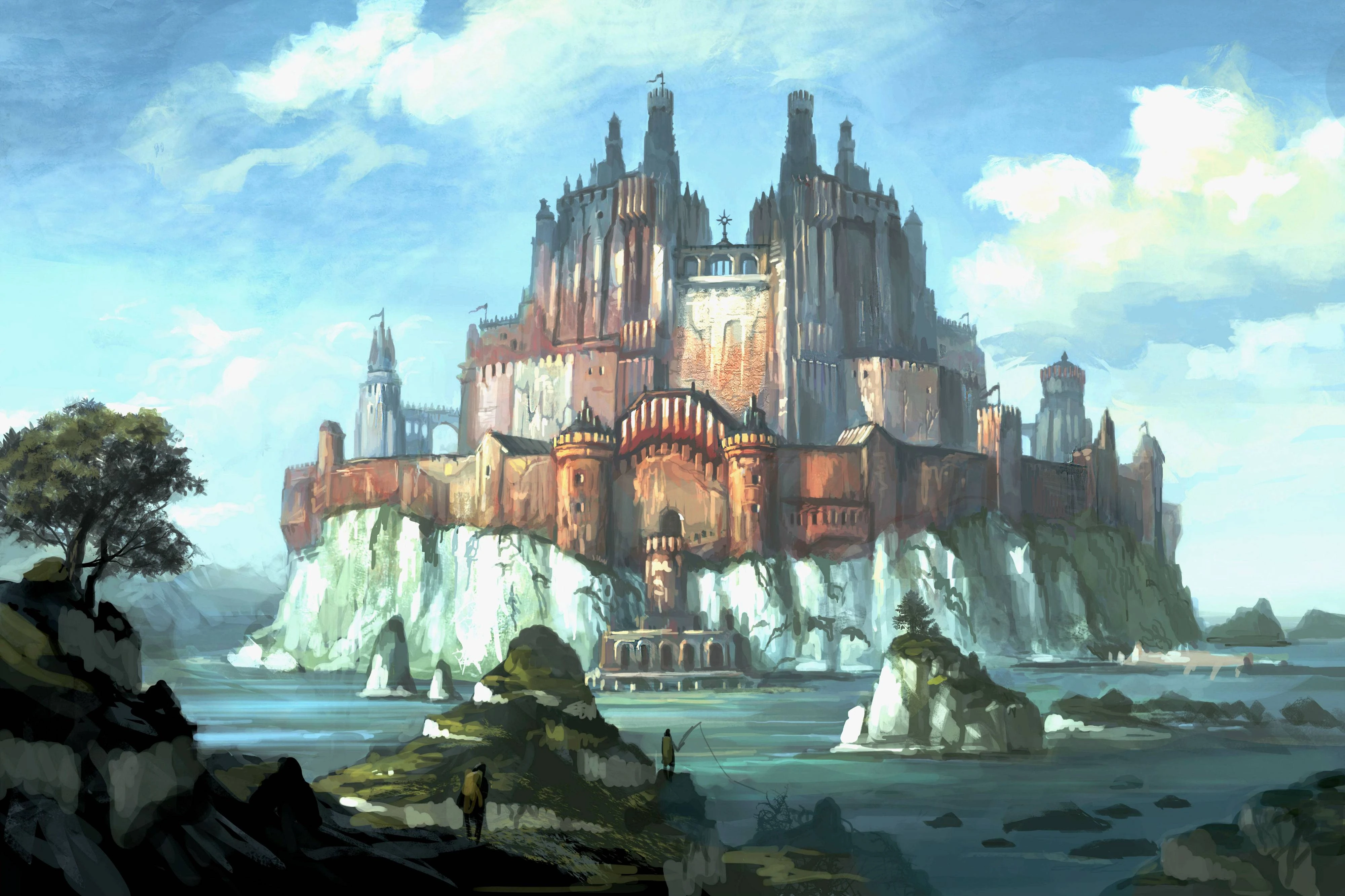 The Dawn Guardians' Fortress Monastery Keep of the Rising Sun is located on an island off the mainland of Orios. It was built in the style of the castles of the kingdoms except it is also adorned with numerous defence turrets and the like. The keep holds the librarius, reclusiam, main hall, dormitories and armouries. The Chapter Master has a throne room from where he rules the Chapter and meets with dignitaries. It was also built so that each day is greeted by the sun rising behind it.