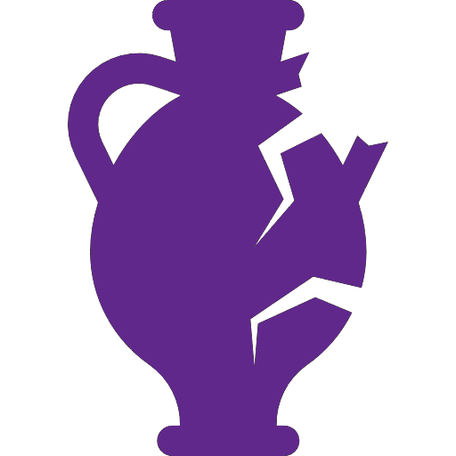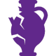 The Dionysus Revellers' Chapter badge takes the form of a stylised, black-coloured, cracked amphora, a type of ceramic container with a pointed bottom and characteristic shape and size that were commonly used to store wine.