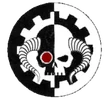 The Iron Harbingers Chapter badge takes the form of the Cog Mechanicum, also called the Opus Machina, the ancient symbol used to represent the Adeptus Mechanicus and their religious faith, the Cult Mechanicus. This symbol is prominently displayed, denoting the Iron Harbingers close ties with both the Omnissiah and his most loyal adherents. This central symbol is centered within a half-cog/half-chain symbol, indicating their close association with the Legio Cybernetica, one of the oldest sub-branches of the Adeptus Mechanicus that is responsible for deploying fully autonomous Battle-Automata.
