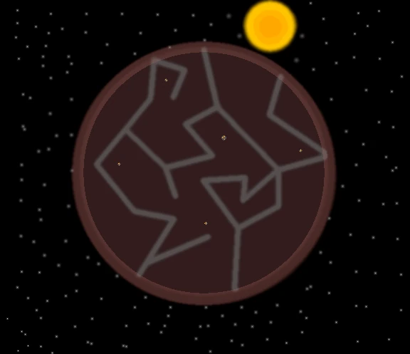 the planets surface is marred by jagged rocks and massive canyons that can be seen from space, the atmosphere barely exists being mostly Co2, requiring anyone wanting to traverse the surface to bring there own oxygen
