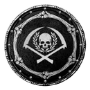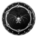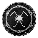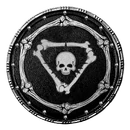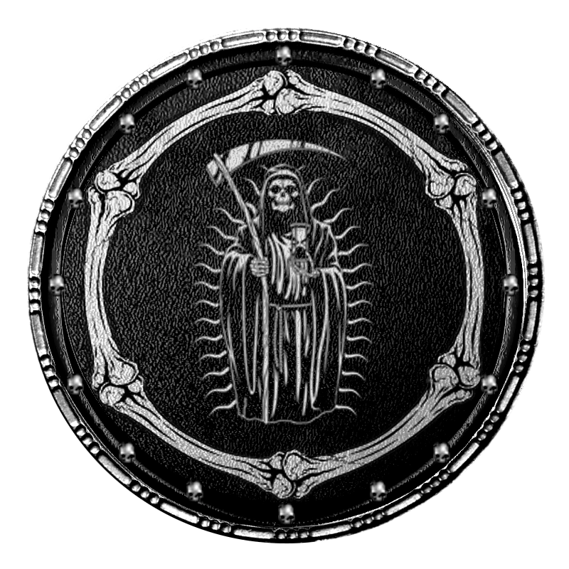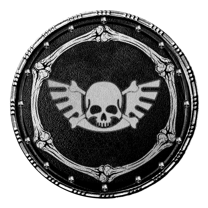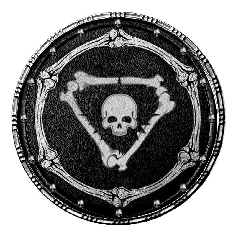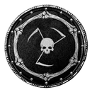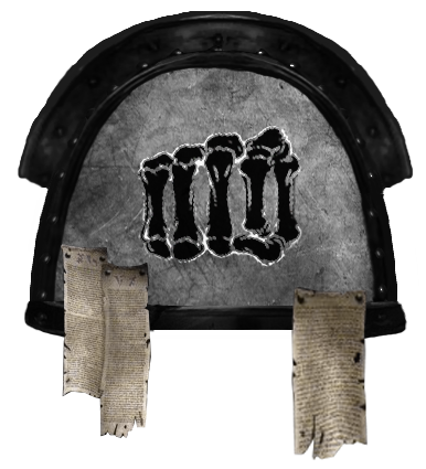 The Mortiferous Shades Chapter badge is a black coloured close skeletal fist centered upon a field of silver.