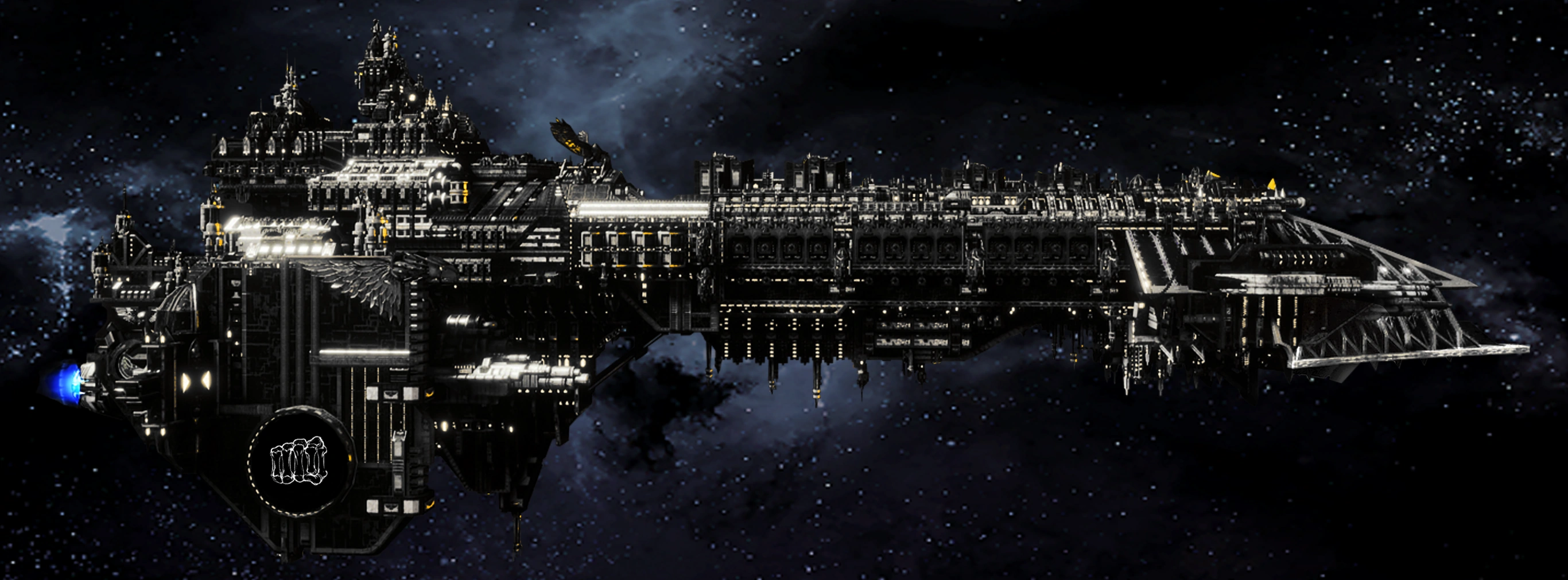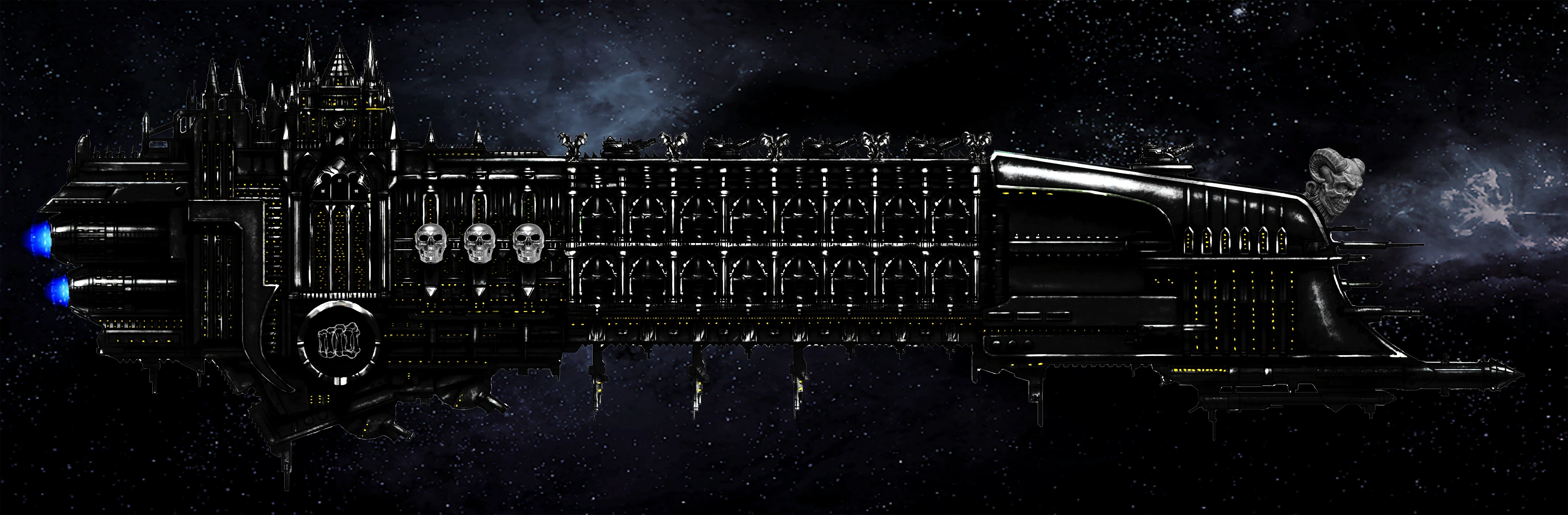 - Atrum Mortem (Unknown Class Battleship) - The Atrum Mortem, meaning "Black Death" in Low Gothic, is the imposing flagship of the Mortiferous Shades Chapter. This immense vessel serves as not only their flagship but also as a mobile Fortress-Monastery, embodying the strength, power, and resilience of the Chapter. As the centrepiece of the Mortiferous Shades' fleet, the Atrum Mortem is a sight to behold. Clad in dark, formidable armour, the vessel exudes an aura of intimidation and foreboding. Its ebon hull, adorned with the Chapter's iconography, stands as a symbol of the Mortiferous Shades' unwavering dedication to the Emperor and their mission to bring death to his enemies. The Atrum Mortem boasts an array of formidable weapons and defensive systems, ensuring its ability to withstand the rigours of battle. Its formidable void shields and powerful armaments make it a force to be reckoned with in the void of space. Beyond its formidable firepower, the Atrum Mortem houses the Mortiferous Shades' command centre, training facilities, armouries, and sanctuaries. It serves as a mobile base of operations, allowing the Chapter to project its power across the stars and respond swiftly to threats wherever they may arise. Under the command of the Lord Marshal, the Atrum Mortem serves as a rallying point for the Mortiferous Shades, a symbol of their unity and purpose. It carries the Chapter's traditions, relics, and the indomitable spirit of the Astartes who call it home. Whether soaring through the void or leading the charge into the heart of battle, the Atrum Mortem stands as a testament to the Mortiferous Shades' power and resolve, ensuring that death and judgment follow in their wake.