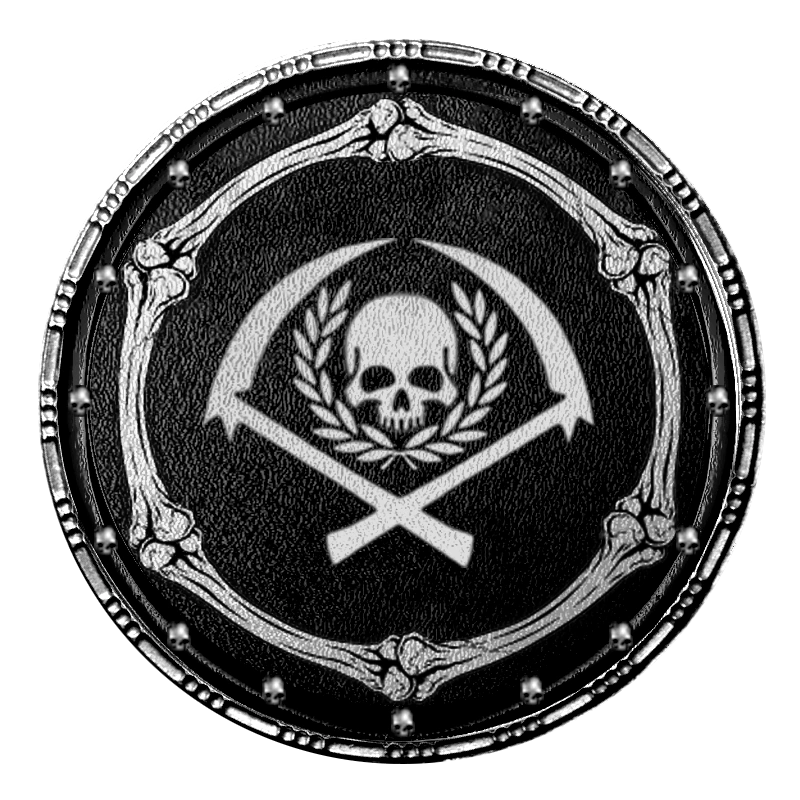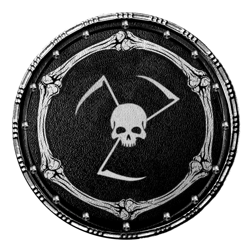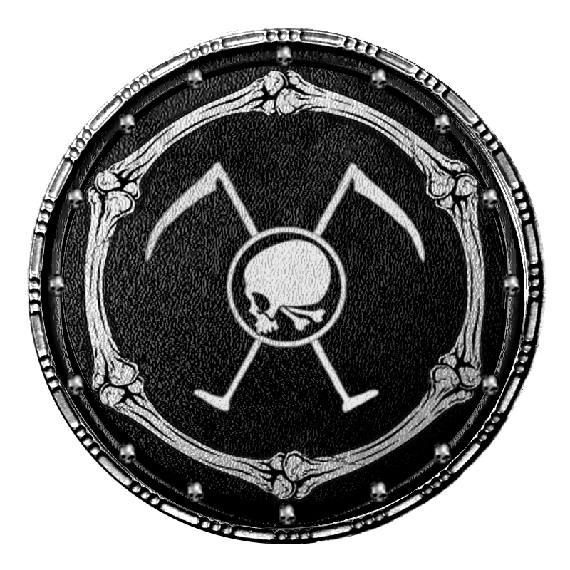 - 3rd Harrow: A large skull facing forwards, centered upon three scythes in.
