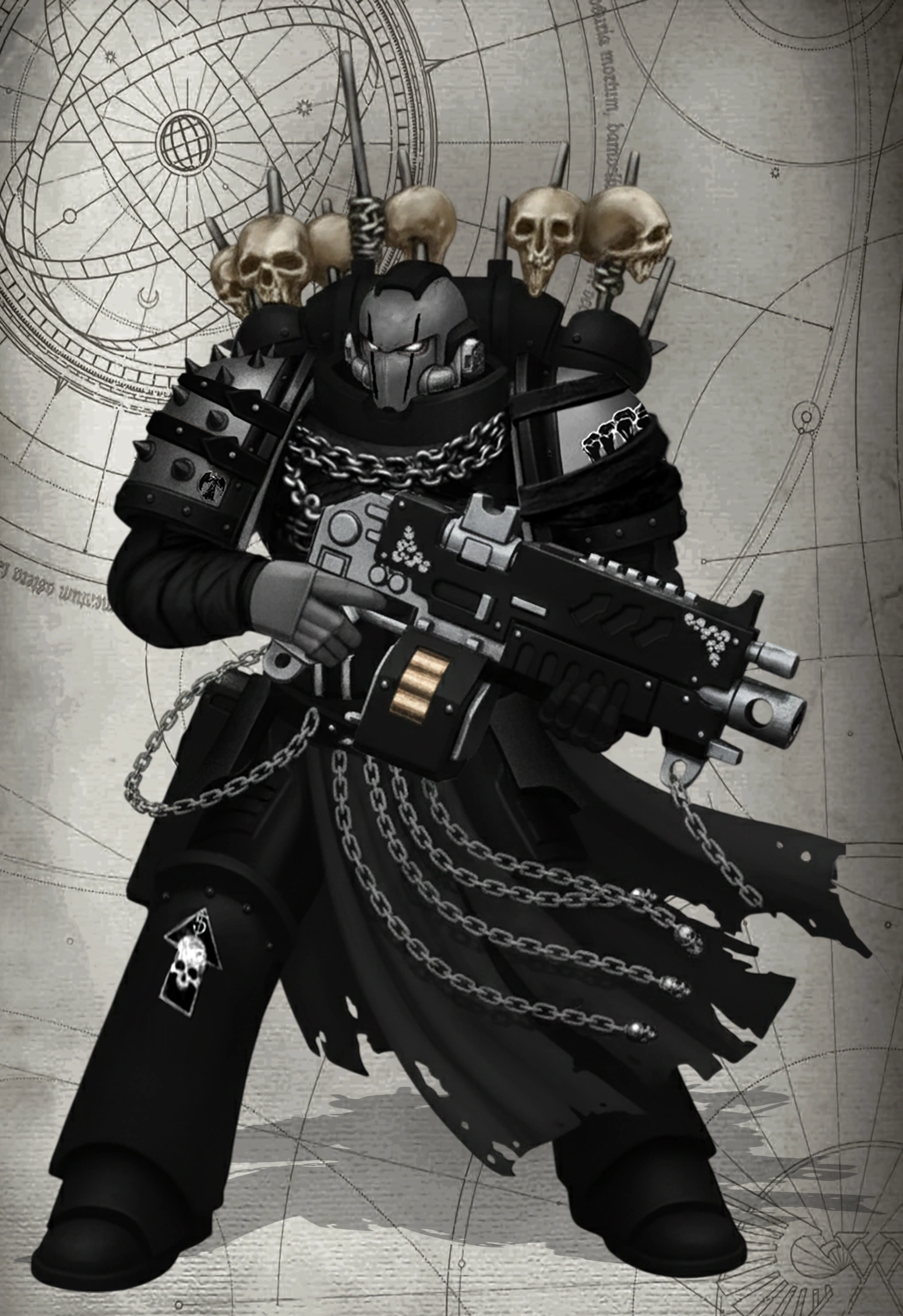 The Mortiferous Shades, a 4th Founding chapter of the Adeptus Astartes, trace their origins back to the Death Templars, who themselves descended from the lineage of the Primarch Rogal Dorn. They were founded in the mid-centuries of the 32nd millennium following the devastating War of the Beast, a conflict that nearly brought the Imperium to its knees against a massive Ork WAAAGH! comparable to those encountered during the Great Crusade.