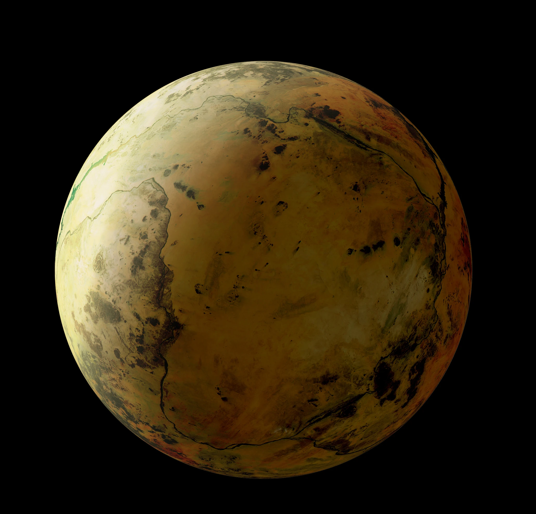 Localized orbiting a gas giant known only as Pearl, Alura is a small desert Moon, inhabited by approximately 1.000.000.000 citizens of the Imperium. Research points that Alura was originally a temperate world who became a satellite of Pearl millions of years ago, its atmosphere changed as a result of its interaction to its orbited planet, and during this interactions, is reached a consensus that over half of its atmosphere was lost. Their citizens are specialized in mining and production of food. They inhabit the many caverns present in the world, where they can find water and stay far away from radiation emitted from their red sun.