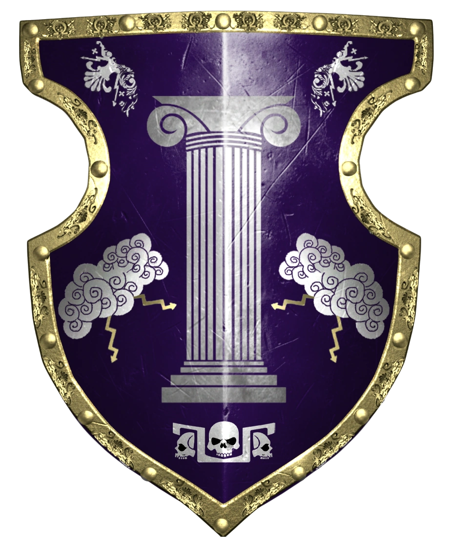 The Pillars bear the colors of their homeworld, ivory and purple, arranged in a halved pattern, with golden trim.