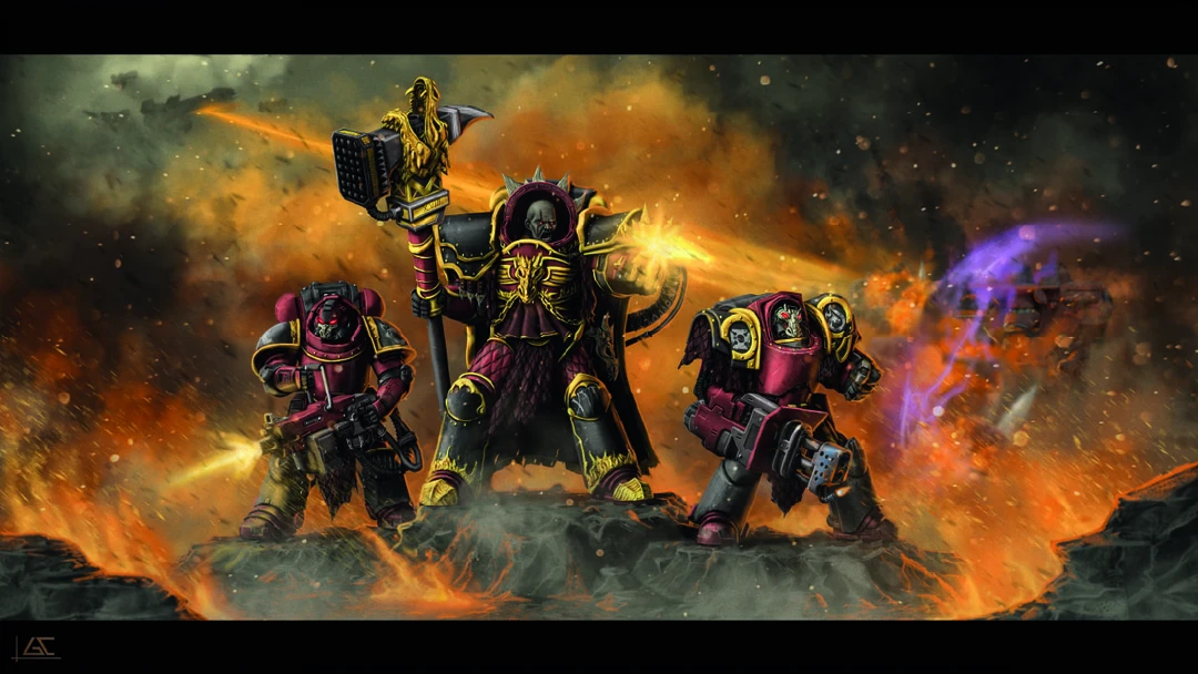 The Pyroclast Wardens are semi-Codex compliant, respecting the structural intent of the Codex Astartes while integrating traditions from their Legion-era legacy. Each Company is commanded by a Captain and functions with tactical autonomy, following the doctrines of combined-arms warfare, fortified lines, and calculated siege advancement. However, the Ashguard (Astra Militarum) and Imperial Navy assets assigned to Caldera do not operate as integrated Chapter forces. While the Codex strictly forbids permanent auxiliary units within a Chapter’s command hierarchy, the Pyroclast Wardens maintain close strategic alignment with both factions. As Caldera is under joint military governance, and the Wardens exert considerable influence across their sector, reinforcements from Ashguard battalions and Navy detachments can be requested, approved, and deployed swiftly when needed. This allows for a level of coordination that respects the Codex’s boundaries while ensuring efficient joint operations during large-scale conflicts. The Chapter also employs customized fire-based squad configurations, favoring melta, flamer, and plasma weaponry, and frequently deploys Dreadnought-heavy firebases and siege lines instead of traditional Codex company battlelines. Additional roles such as Igniax, Forge-Warden, and Chapter Consuls reflect their internal doctrine and the needs of a Chapter born in fire and war.