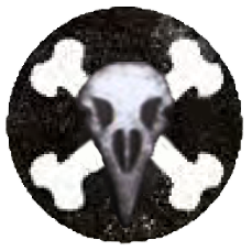 The Shadow Talons' Chapter badge is a large stylised, white coloured raven, its wings volant (wings adorsed and elevated), facing forwards towards the enemy. This central symbol is centered upon a field of deepest black.