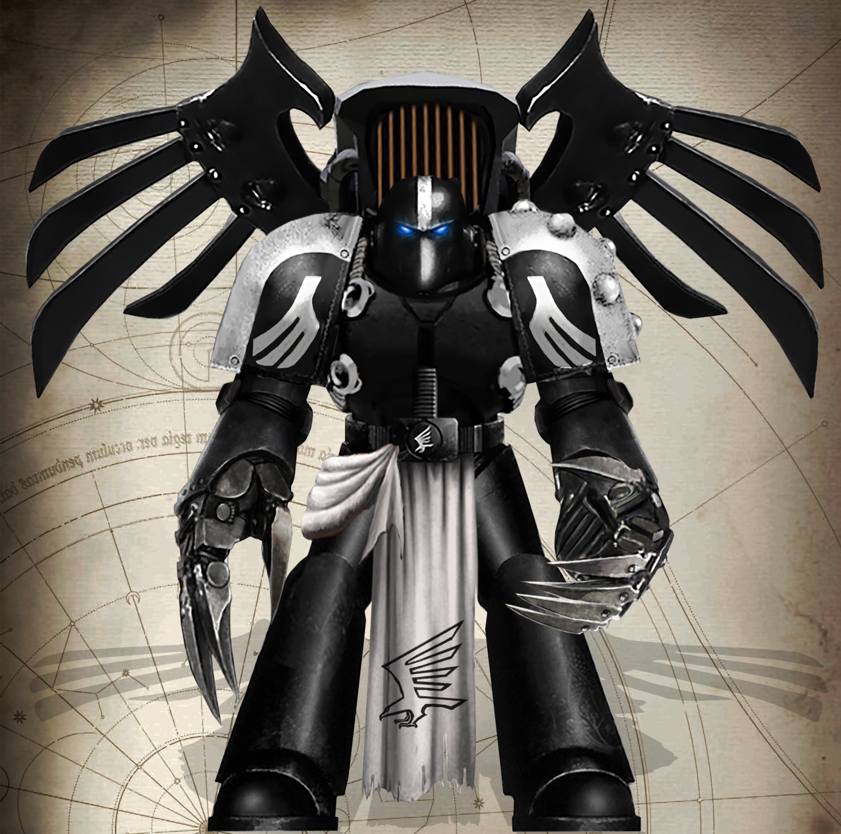 This rare Raven Guard Successor Chapter was created in the wake of the dark times following the disastrous War of the Beast against the largest Ork WAAAGH! seen by the Imperium of Man since the time of the Great Crusade. Though the Imperium ultimately emerged victorious, it was a pyrrhic victory at best as they had sacrificed much, including severe losses amongst the Chapters of the Adeptus Astartes. The newly instilled Lord Commander of the Imperium decreed that the Imperium would raise as many new Chapters as they had gene-seed in the great vaults of Terra to sustain. All Chapters of the Adeptus Astartes were ordered to release a portion of their Veterans to provide the initial basis for this Founding, the greatest since the First Founding. Gene-seed tithing was doubled for the next standard century to replenish the vaults.