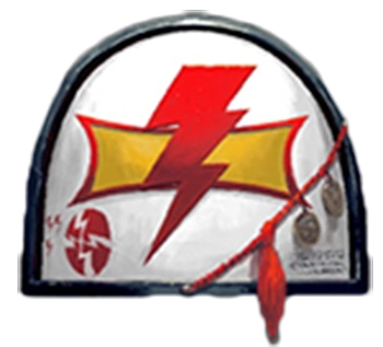 In addition, the Solar Falcons display their house and squad markings on their poleyns (knee guards) or greaves (shin armour) as opposed to using the standardised Gothic or roman numerals utilised by Codex-compliant Chapters. The stylised squad specialty symbol on the right shoulder pauldron (Tactical, Assault, Devastator or Veteran) indicates an individual warrior's assigned squad specialty. Squad markings are also commonly displayed upon the left poleyn, though this is not always commonplace. Due to their age and the salvage rights to most of the debris left behind by the Camenox crusade, including from the Heretic forces, they have a large amount of MkIV power armoured suits. Like their genetic forebears, the Solar Falcons often bear all manner of primitive fetishes, tokens and animal pelts taken from apex predators, a practice inherited from their White Scars progenitors.
