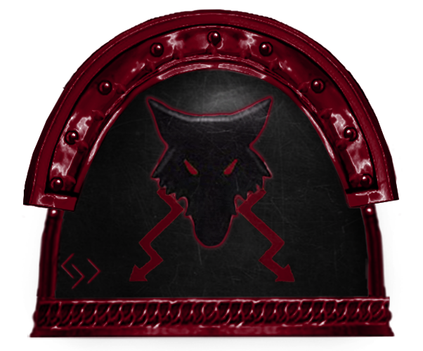 Much like their progenitors, the Tempest Wolves are also a non-Codex oriented Chapter, and as such, instead of using the standard Codex markings to indicate squad assignment, instead they opt to utilise their own unique symbols to represent each Tribe (squad). These symbols are taken from their homeworld's mythology. The Chapter's warriors bear this Pack marking on their right shoulder pauldron and their Chapter icon is proudly born on the left. Strangely enough, the chapter uses markings on the right knee pad similar to a Codex-compliant chapter.