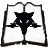 The Tempest Wolves' Chapter badge takes the form of a large, stylised black wolf's head outlined in dark red. A pair of large dark red lighting bolts can be seen striking downwards from the bottom of this central symbol.