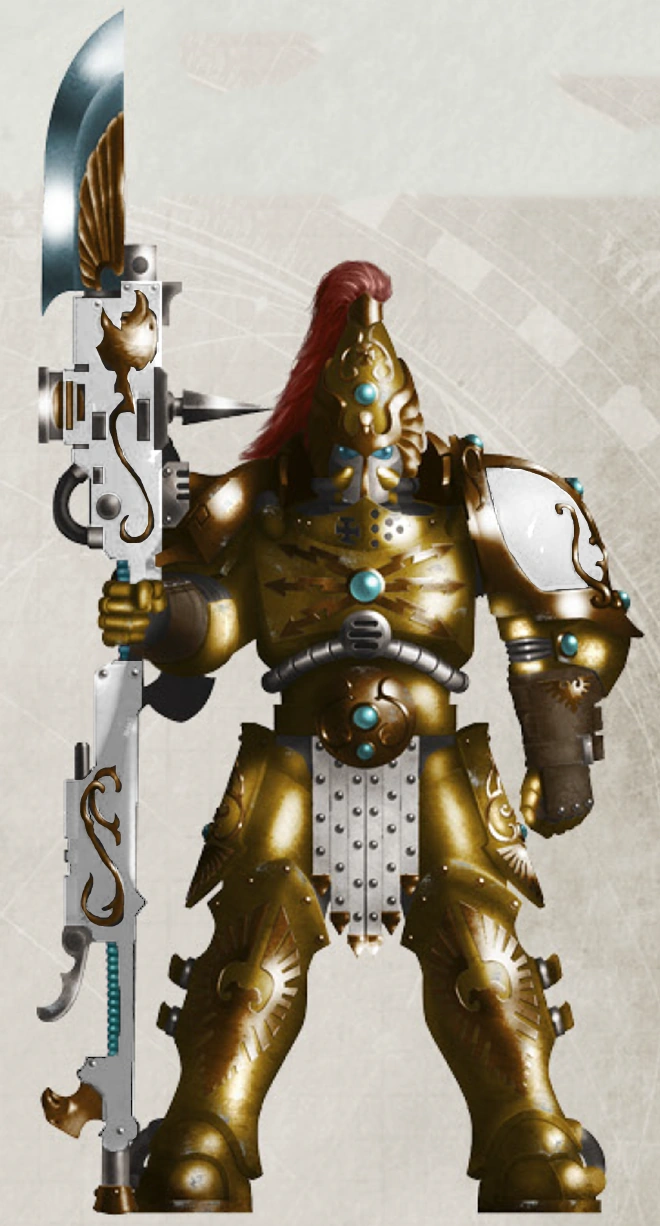 Through countless doubtful sources, sermons from half-crazed priests and the few interactions with the host's leader, Lord of Castigation Kaljann Valgor, sages from the vaults of Terra have come up with a decently reasonable story for the founding of this sparsely known order of the God-Emperor's golden bodyguards. It is believed that, when Horus and three of his brother primarchs betrayed the Imperium and their own sons at the atrocity that would be known as Isstvan III, the waves of the Imaterium reverberated and twisted, granting the Emperor a glimpse of the future, a future in which He would be put down by His favoured son and interred at the technological marvel known as Golden Throne. However, He also saw alternate futures and, in all of those, whenever He survived the duel against the warmaster, humanity falled. In a selfless act, the Imperial regent chose to hide the information acquired from his closest advisors, such as Malcador or Constantin Valdor and, instead, keep going to that dark future in which He would crumble, so that mankind could prosper.