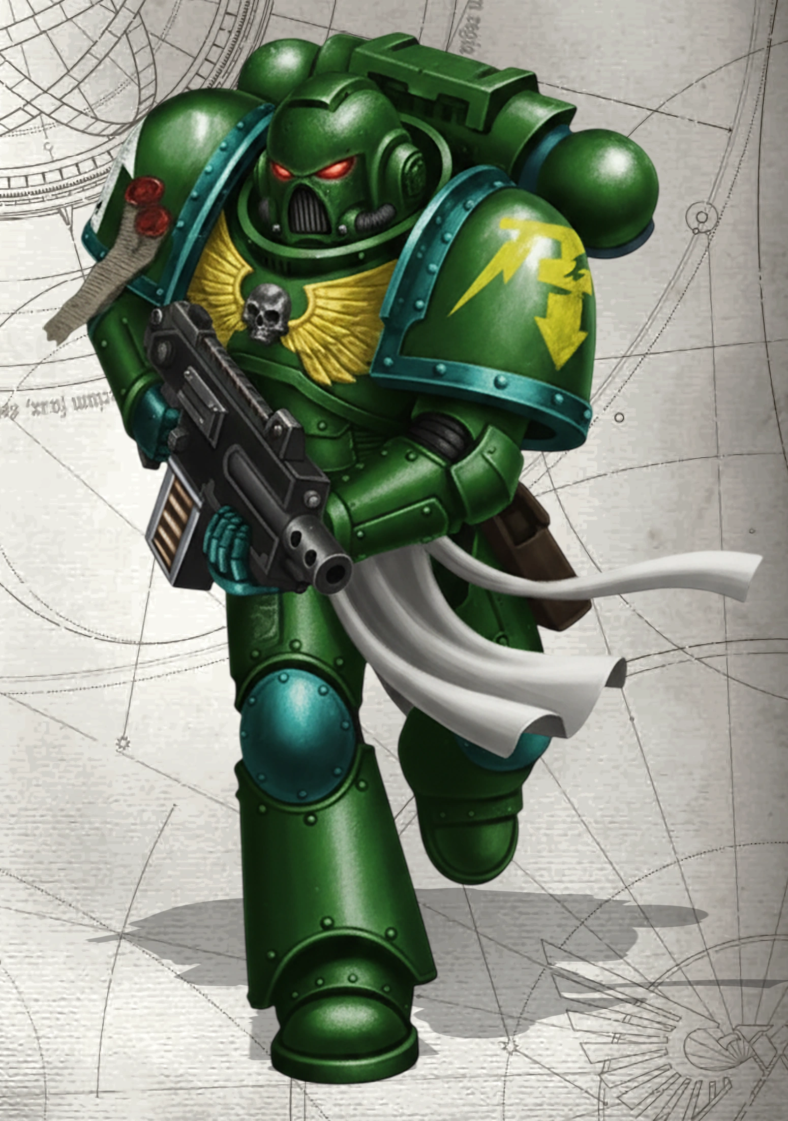 Multiple invasions followed throughout their history, Chaos invasions by Khorne daemons took the life of Chapter Master Duark and three captains. A moment of peace followed the Great Rift opening in which they launched many campaigns. One campaign featured an entire company of Space Marines attacking Sub-Sector Grealk, home of the Gretchin clans. Overwhelmed, the Space Marines sorely underestimated the amount of resistance, and one entire company was destroyed. The other was lost in Cadia. Some successful missions were then sent to relieve the Crimson Fists Chapter homeworld, known as Rynn's World, of a massive daemonic invasion.