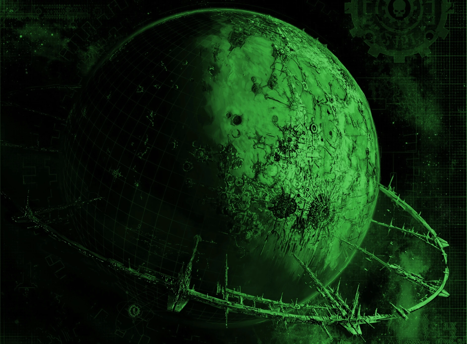 Situated towards the Galactic core, near the warp storm known as the Maelstrom, to call the planet of Volgenstraad a fortress, is to call a steel bastion thousand of feet high a fence. The planet is singular in its pursuit of martial power, its every industry, facility and structure bent to the call of war. Every city, block and district is formulated, designed and constructed to offer maximal defensive protection, and total enemy annihilation. There isn't a single square foot of the planets surface that has not been made fit for purpose in the goal of creating a barbed sphere of iron upon the planets surface. In the skies above Volgenstraad a massive orbital ring encircles the planet, its outer edges bristling with armaments and dockyards, providing a haven for the chapters fleet, and those outsider ships the Warmachines grant safe passage.