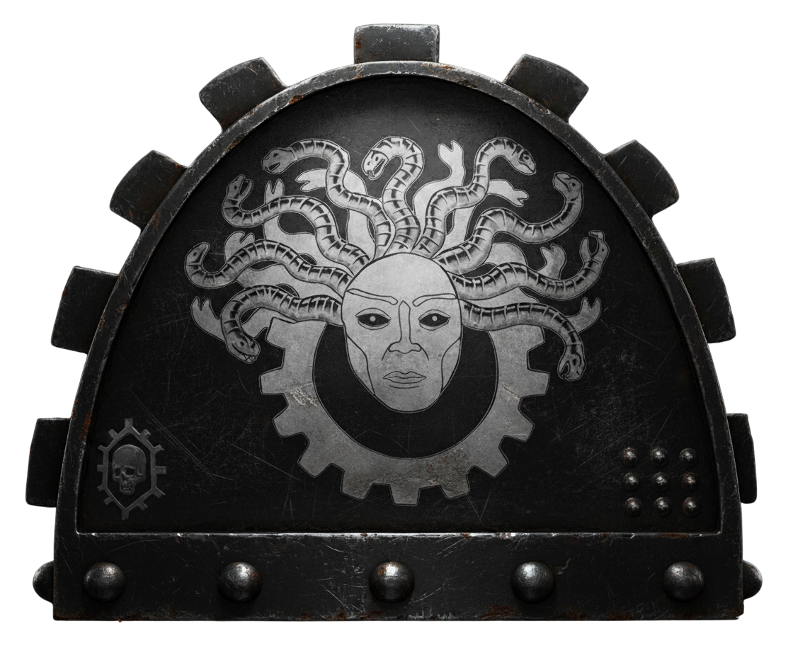 The Chapter culture and cult is little different to that of the Gearsmen they once were. Cold and sometimes deliberately withdrawn, the Marines of the Warmachines are leery of outsiders, especially those who were not born within the steel caverns of Volgenstraad. This distrust of those outside of the chapter has led to a rather solitary existence for the chapter, shunning working alongside others in preference of their own brutal method of war and destruction. Even the Mechanicus, usual allies of the Iron Hands successors, are held at an arms distance, but then, the chapter is not so like its suspected sister chapters. Where the Iron Hands and their successors are renown for their disdain for the flesh and a desire to, often unnecessarily, augment their bodies with bionics, the Warmachines present very little of this practice. The Chapter is perhaps still more likely to augment their bodies than other chapters, but they are far more pragmatic than other sons of the Gorgon. Only replacing organs and limbs with replacements when it is necessary, or there is a distinct advantage to the change, such as bionic eyes, and small digit mechadendrites and vox-grill implants so as to communicate swiftly using binary.