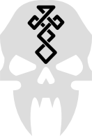 The Wolfborn’s Chapter badge is the symbol of the Havi, the sentinel wolf god of Valkenheim. This totem is a stylized Drake Wolf head against a black background. Many different and stylized versions of this symbol exist among the different clans, however, like their gene-brothers, The Wolfborn usually take the symbol of their respective clan, as opposed to the chapter as a whole.