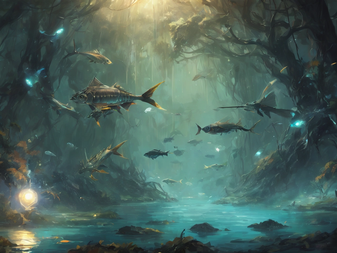 The islands themselves are their own miniature ecosystem cut off from the mainlands around them, leading to many animals that are not seen anywhere else on Malgard, such as the swarming schools of Nallyoni in the coral reefs around the islands with their razor-sharp head prong and their lithe, agile bodies being able to shoot themselves threw any man unlucky enough to fall into the water, the stealthy Korri, an arthropod-esque species that crawls along the floor of the forested areas of the larger islands, or the Balnyta (High Gothic: Fire Eater), an avian species with a 4 to 5 foot wingspan that makes its nests in the side of the few volcanic islands. In addition to these unique creatures, there are also the mesmerising glowfish that inhabit the depths of Malgard's dark waters. These bioluminescent fish emit a soft, ethereal glow, illuminating the underwater world like floating lanterns. Another extraordinary species found on the island are the elusive Crysalia, known for their exquisite crystalline exoskeletons that glisten under the island's vibrant sunlight. Furthermore, the enchanting song of the Melodis birds fills the air as they soar above the lush jungle canopies with their vibrant plumage and melodious tunes, creating a harmonious symphony.