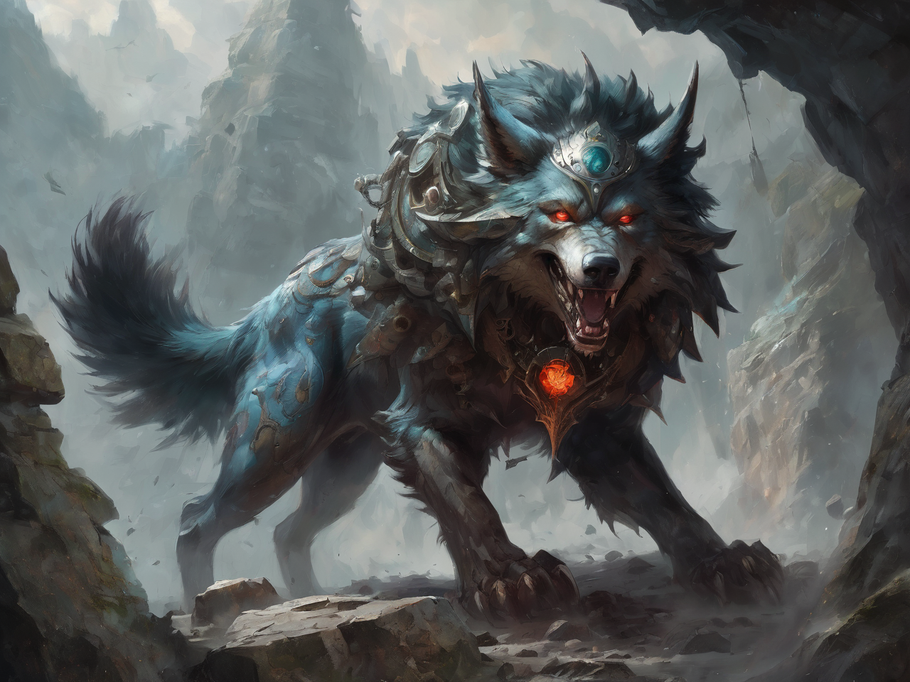The large open stretches of the inner region of Viaocali lend themselves to some grazing animals living in the region, and in a strange case of non-convergent evolution, they have led to the evolution of an animal very similar to the Grox, known as the Atah, a quadrupedal reptilian lifeform that has long silver hair on its head that runs down a ridge on its back with the rest of its torso being covered in a chitinous plate and a long snouted face protruding in front of two bulbous eyes. While the local Tretelgia people know of the dangers of a herd of rampaging Atah, they are generally used as farmstock; however, this brings in the other hazards of the area: the predators of the land. One such predator is the Amarok, a large carnivorous beast with sharp fangs and a keen sense of smell, very similar to the dire wolf of early Terran legend but vastly larger, with the adults standing at an Astarte's hip. The Amarok is known for its stealthy nature and ability to camouflage itself within the forested terrain and brush along the plains. It preys on unsuspecting Atah, picking off the weaker or injured individuals from the herd. The Tretelgia people have developed strategies to protect their farmstock from these predators, such as building sturdy fences and employing trained Amarok that they have raised from birth to keep their feral counterparts at bay. Despite the constant threat, the coexistence between the Atah, the Tretelgia people, and the Amarok, both feral and trained, showcases the delicate balance of life in this unique ecosystem.